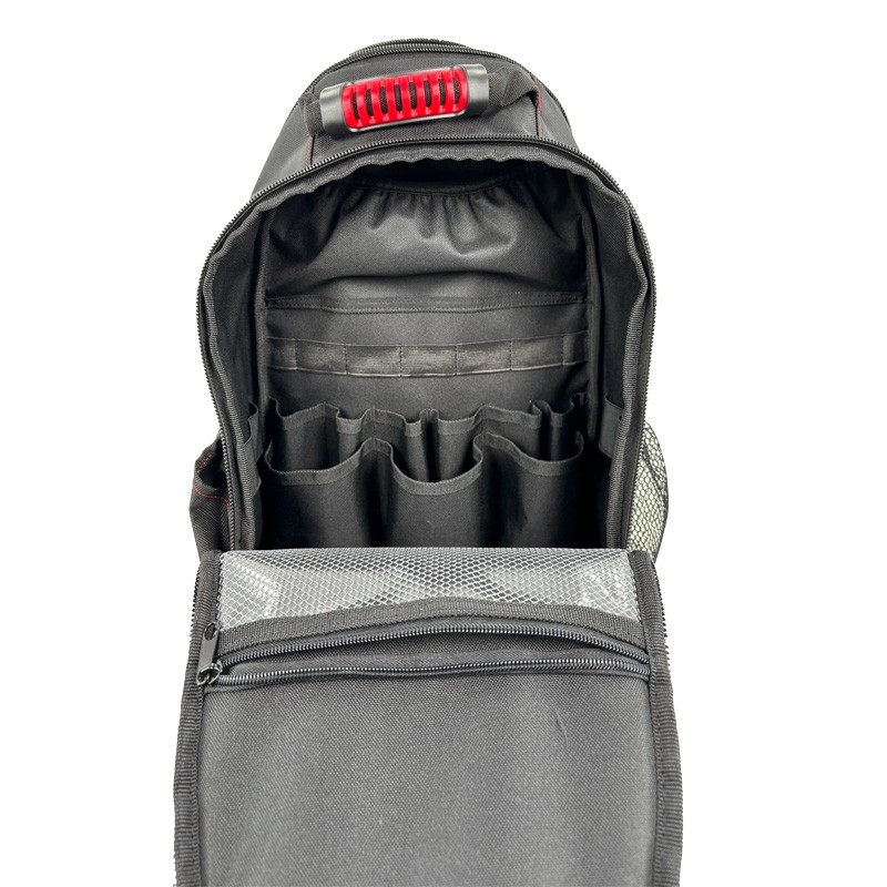 2. Capacity: Multiple compartments and pockets designed for efficient tool organisation and easy access to equipment. The tool bag backpack is suitable for carpenters, plumbers, repairers, DIY enthusiasts, etc.